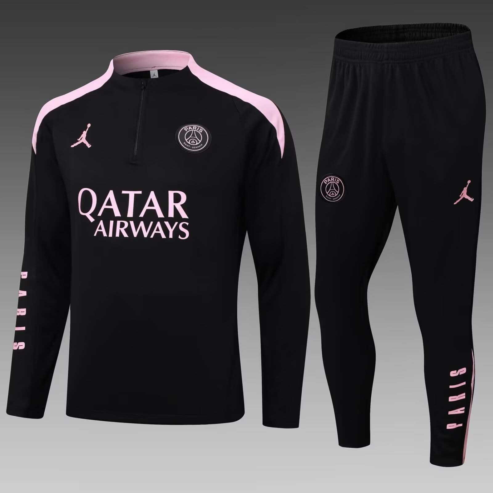 2024/2025 Psg Paris Saint-Germain Half-Pull Training Suit Black and pink Set
