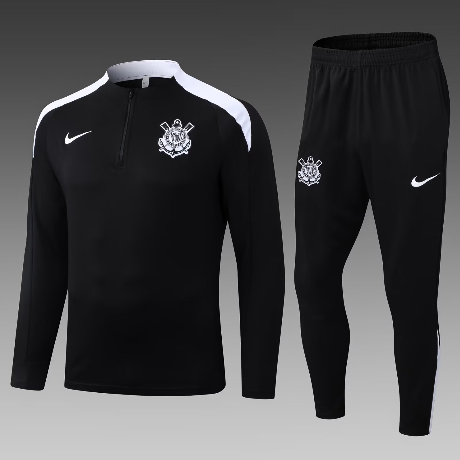 2025/2026 Corinthians Paulista Half-Pull Training Suit Black Football Shirt 1:1 Thai Quality Set
