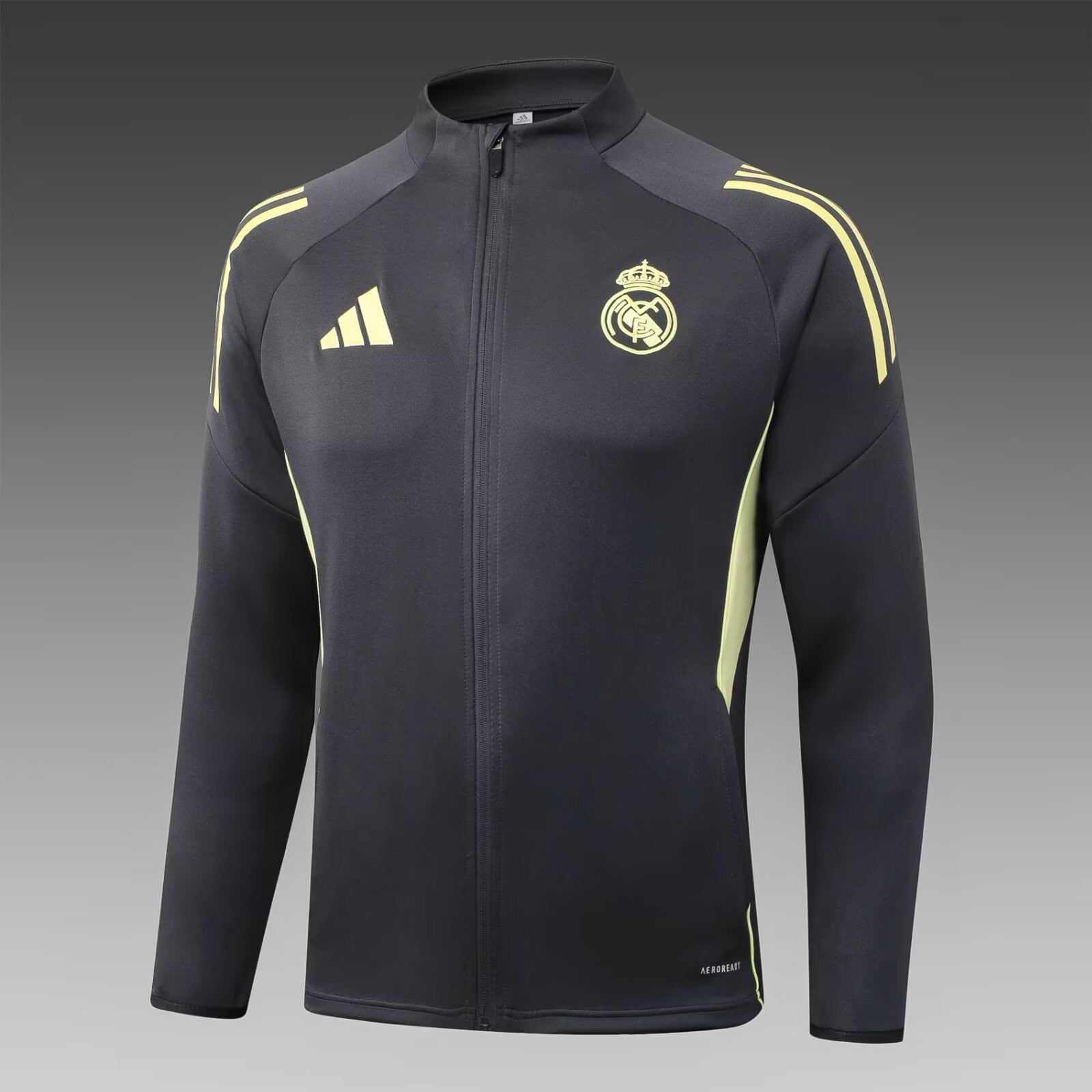 2025/2026 Real Madrid Long Zipped Jacket Dark Gray Football Shirt Set