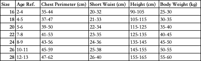 Kids Jersey Size Chart